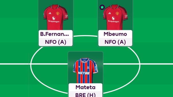 This week in FPL, I had to prioritise either Jean-Philippe Mateta (£7.7m) or one of the Manchester United midfielders for my FPL team. I have two free transfers and £0.5m in the bank.